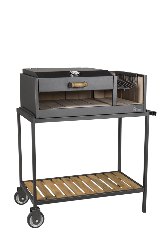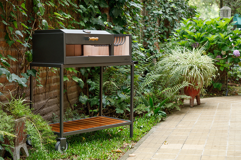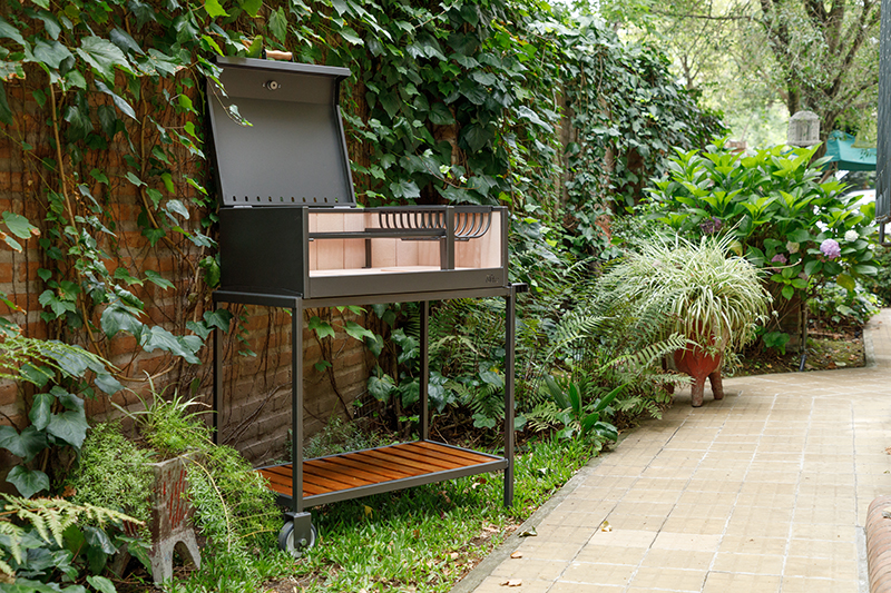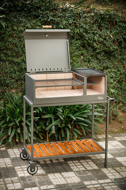 Una parrilla tradicional para desarrollar sus capacidades culinarias. Posee una parrilla de hierros redondos enlozados y a continuación un brasero para encender con facilidad el carbón o la leña, sobre este se puede colocar una plancha o wok donde cocinar vegetales, filetes, provoletas, etc.